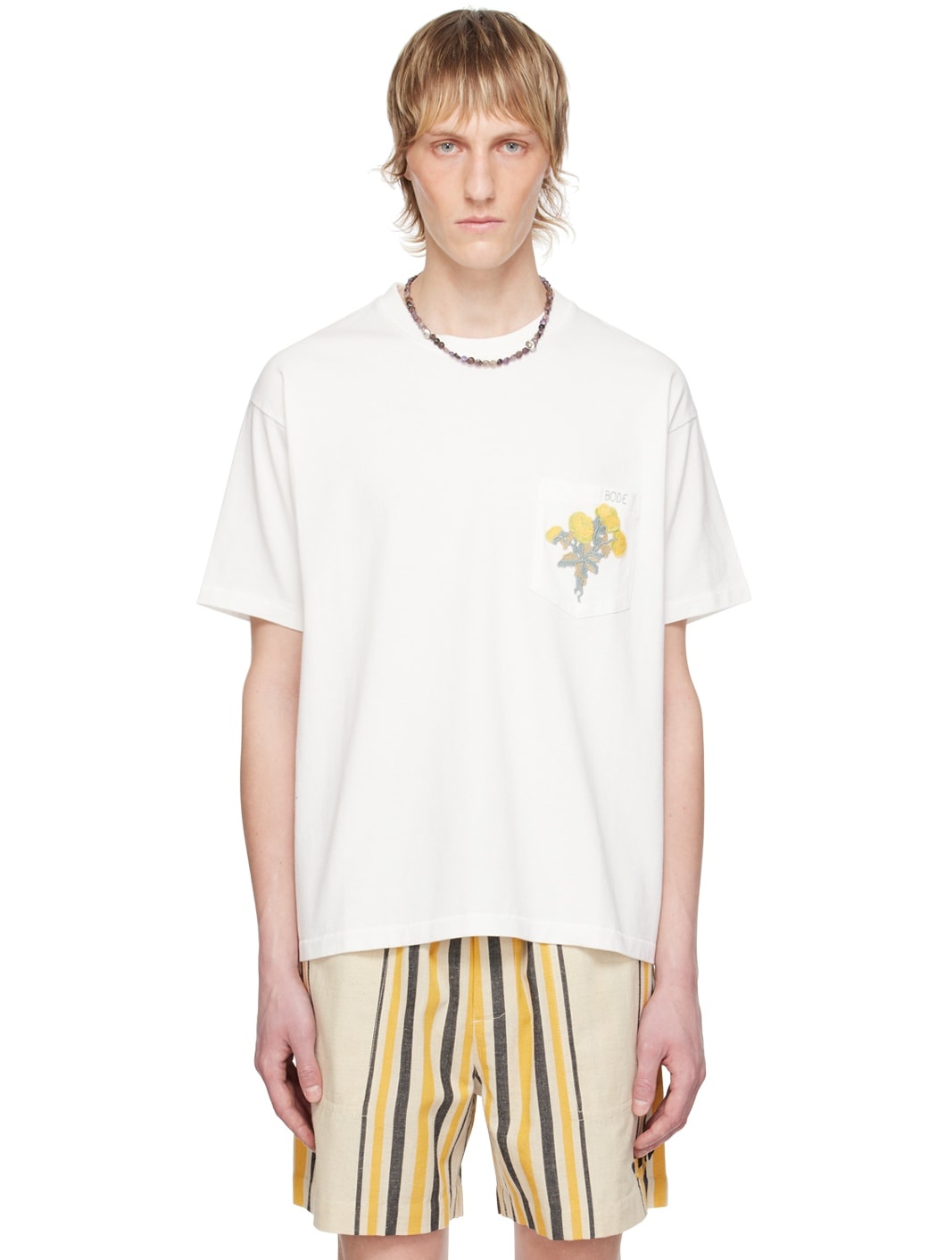 Cotton jersey T-shirt. · Rib knit crewneck · Floral graphic and logo embroidered at patch pocket This item is part of a limited run of 378. Supplier color: Cream 100% cotton. Made in Portugal 242169M213002