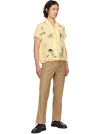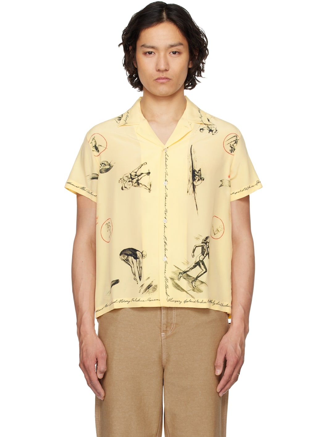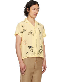 Plain-woven silk shirt. Text and graphics printed throughout. · Open spread collar · Button closure This item is part of a limited run of 197. Supplier color: Yellow 100% silk. Made in India 251169M192015