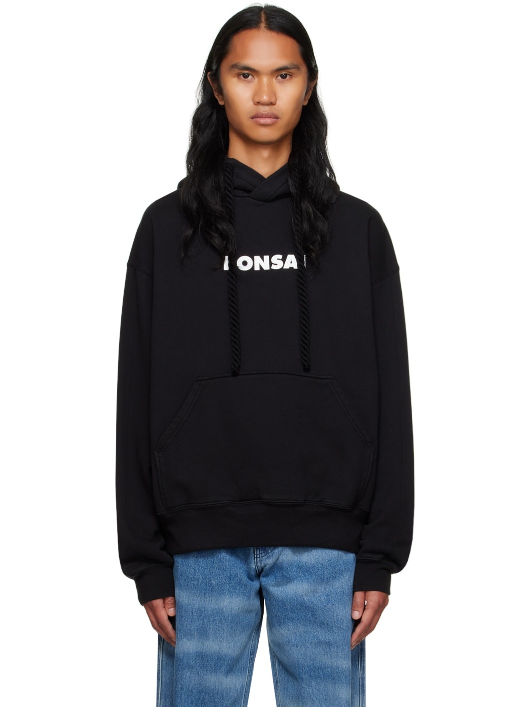 French terry hoodie. · Twisted drawstring at hood · Logo printed at front · Kangaroo pocket · Bungee-style drawstring at rib knit hem · Logo flag at side seam · Dropped shoulders · Rib knit cuffs Supplier color: Black/Black 100% cotton. Made in Italy 232945M202001