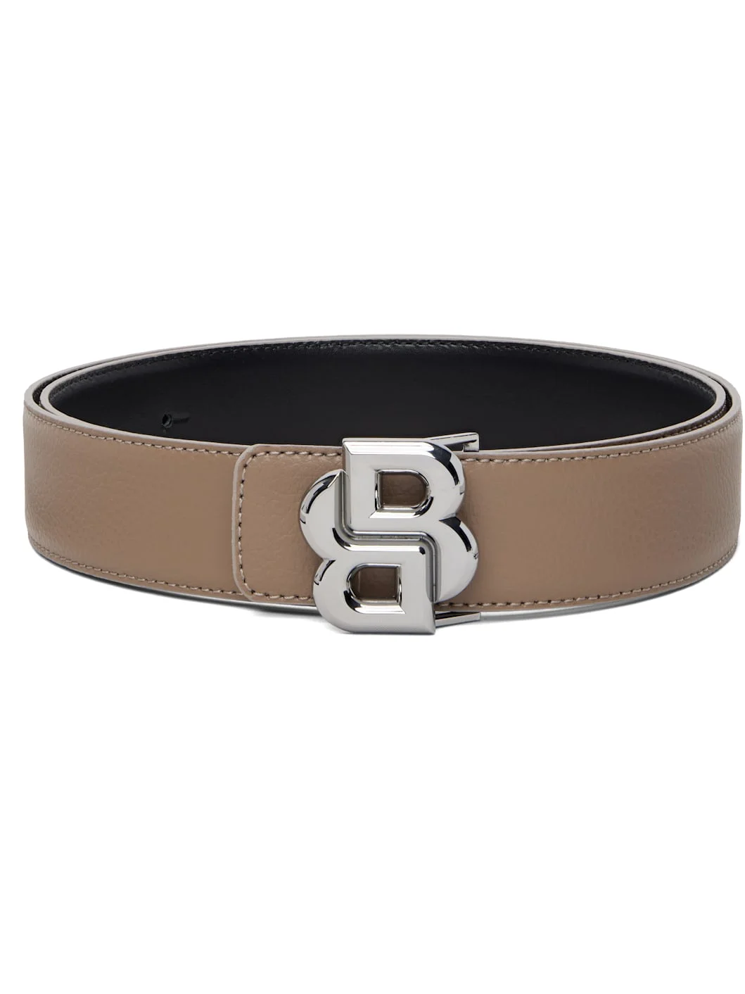Reversible grained leather belt. Reverse in black polished leather. · Logo-engraved post-stud buckle · Keeper loop with enameled plaque at front · Silver-tone hardware · W1.25" Supplier color: Medium Beige Leather. Made in Italy 261085M131001