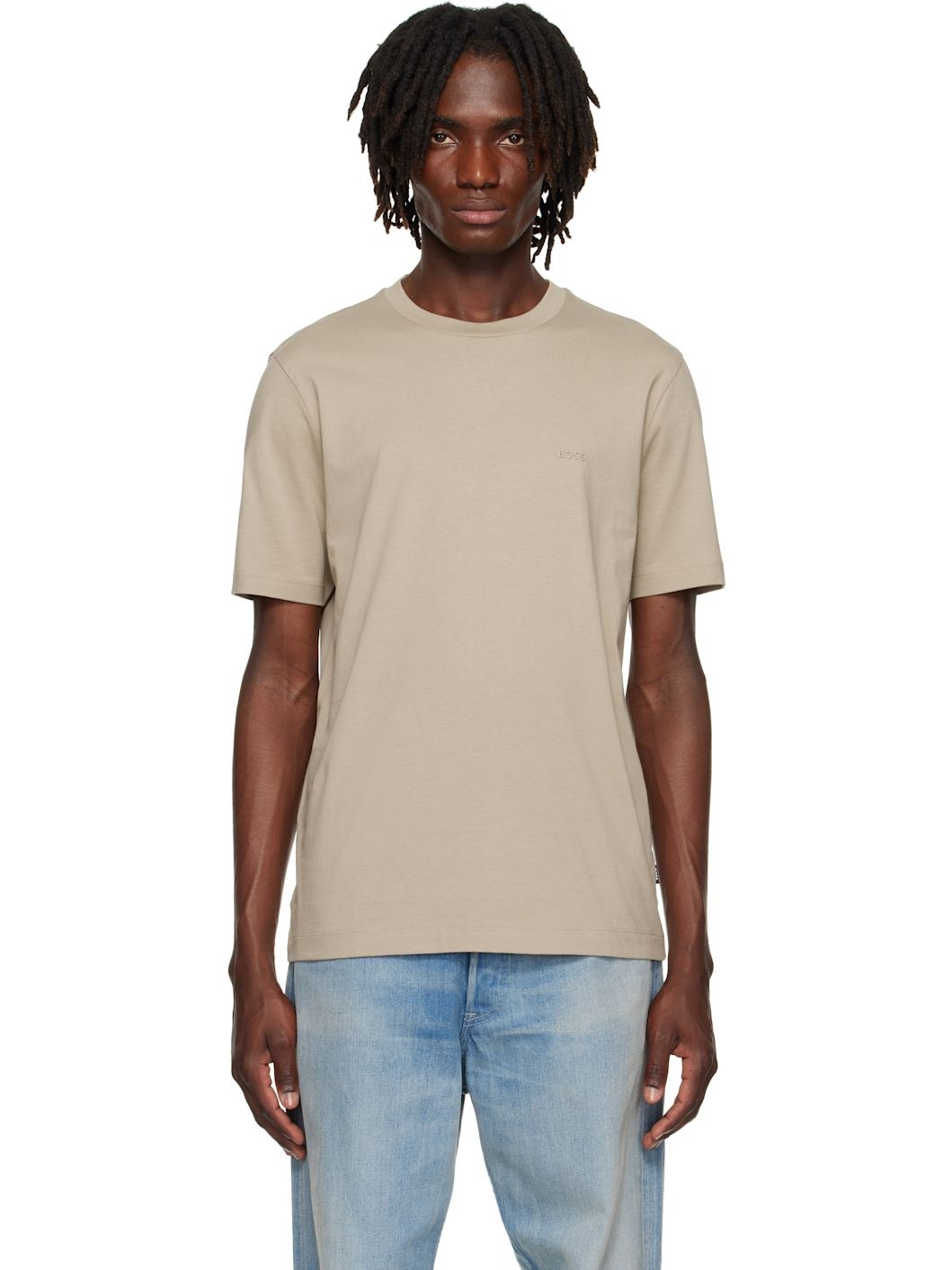 Cotton jersey T-shirt. · Rib-knit crewneck · Rubberized logo bonded at chest Supplier color: Dark beige 100% cotton. Made in Pakistan 252085M213006