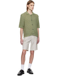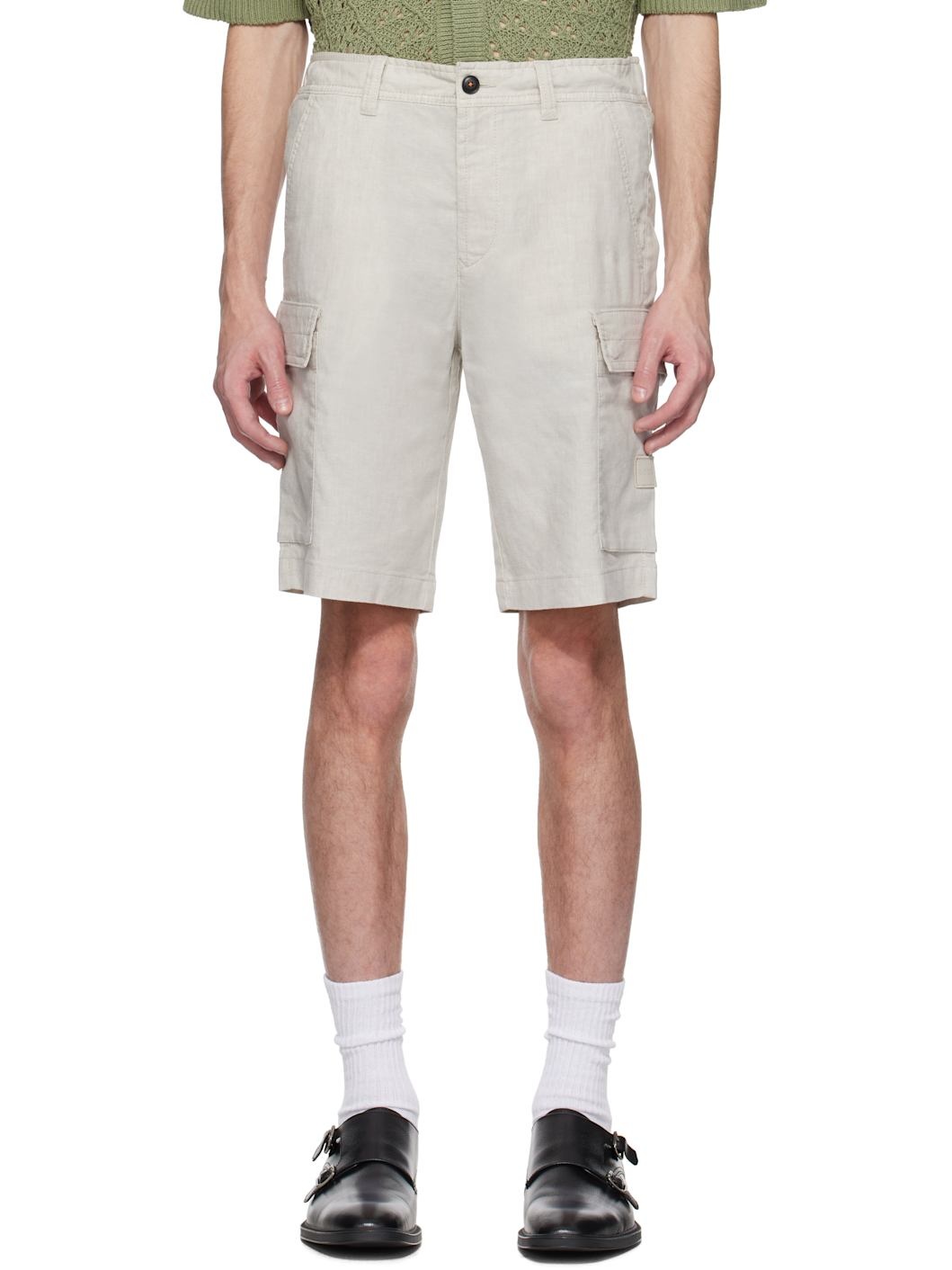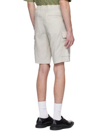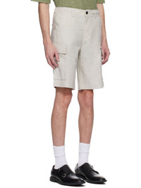 Plain-woven linen-blend cargo shorts. · Loose-fit and tapered · Concealed drawstring at waistband · Belt loops · Four-pocket styling · Zip fly · Flap pocket at outseams · Embroidered logo patch at outseam Supplier color: Light beige Body: 64% linen, 36% polyester. Lining: 100% cotton. Made in Bangladesh 251085M193016