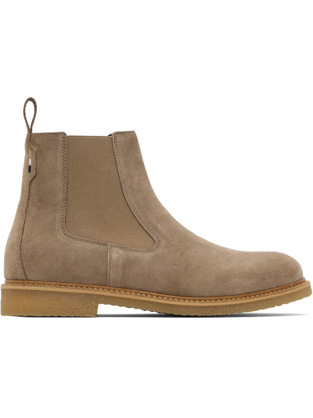 Ankle-high faux-suede Chelsea boots. · Elasticized gusset at sides · Woven pull-loop at heel collar · Topstitching at welt · Treaded crepe rubber sole Supplier color: Beige Upper: synthetic. Sole. Rubber. Made in Portugal 252085M223003