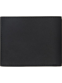 Saffiano leather trifold wallet in black. · Logo stamp at face · Two patch pockets at interior · Mesh ID slot and eight card slots · Coin compartment and two note slots · Twill lining · H3.5" x W4.5" x D1" Supplier color: Black Leather. Made in India 252085M164006