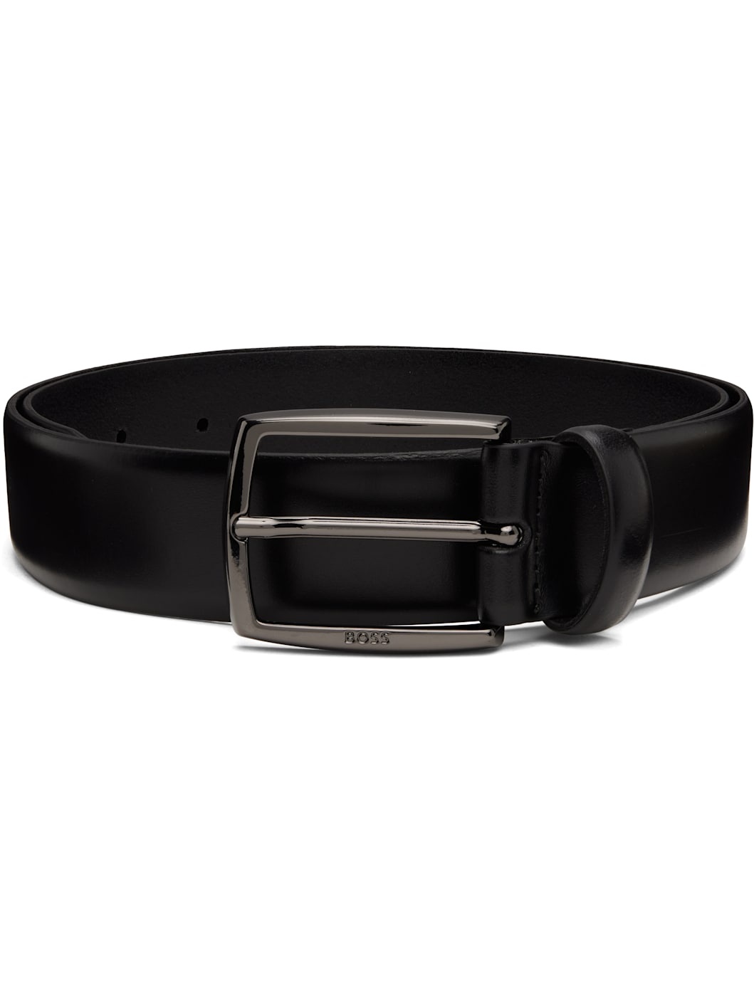 Black Italian-Leather Polished Buckle Belt