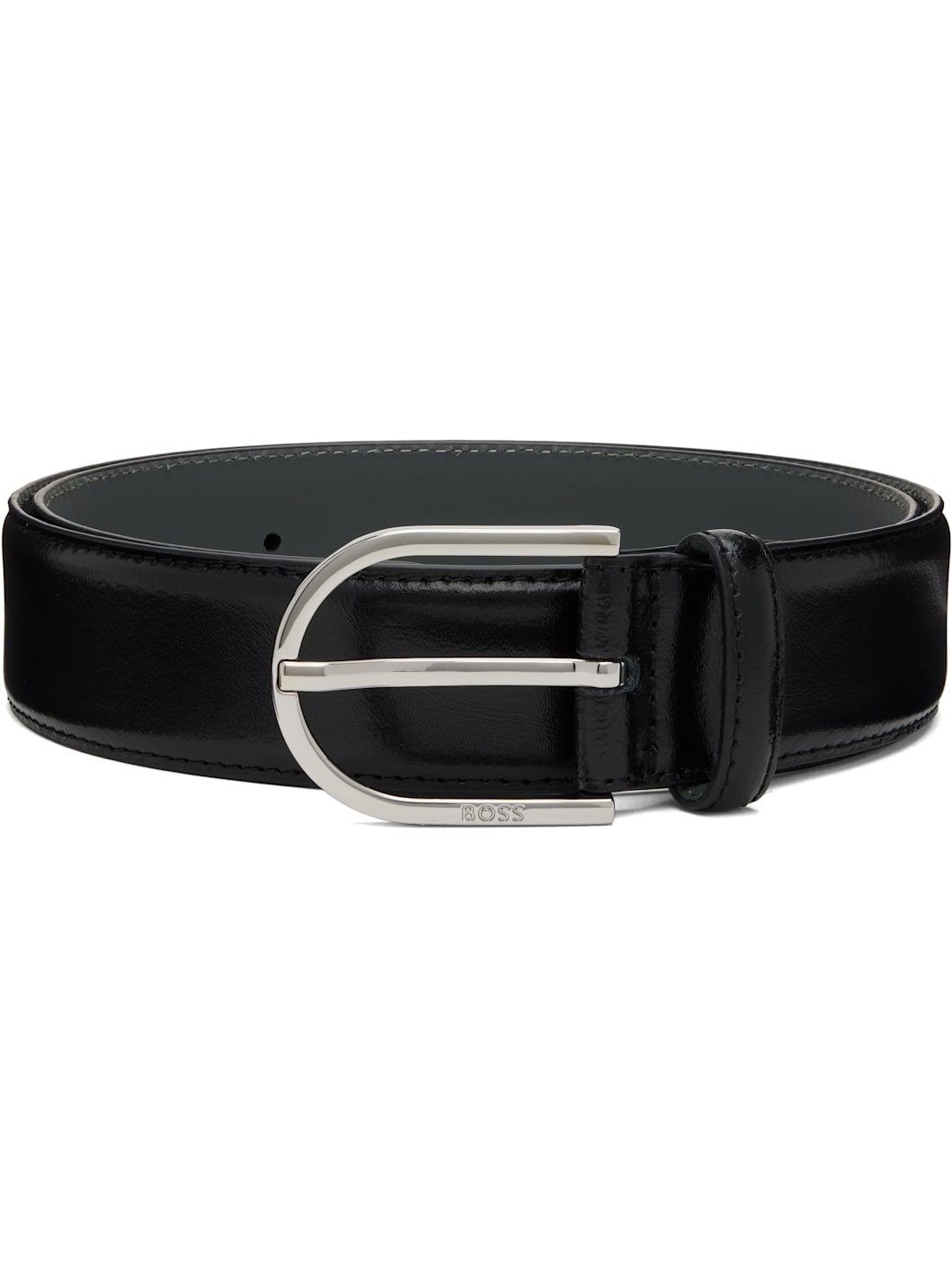 Polished leather belt. · Logo-engraved pin-buckle fastening · Silver-tone hardware · W1.25" Supplier color: Black Leather. Made in Italy 252085M131003