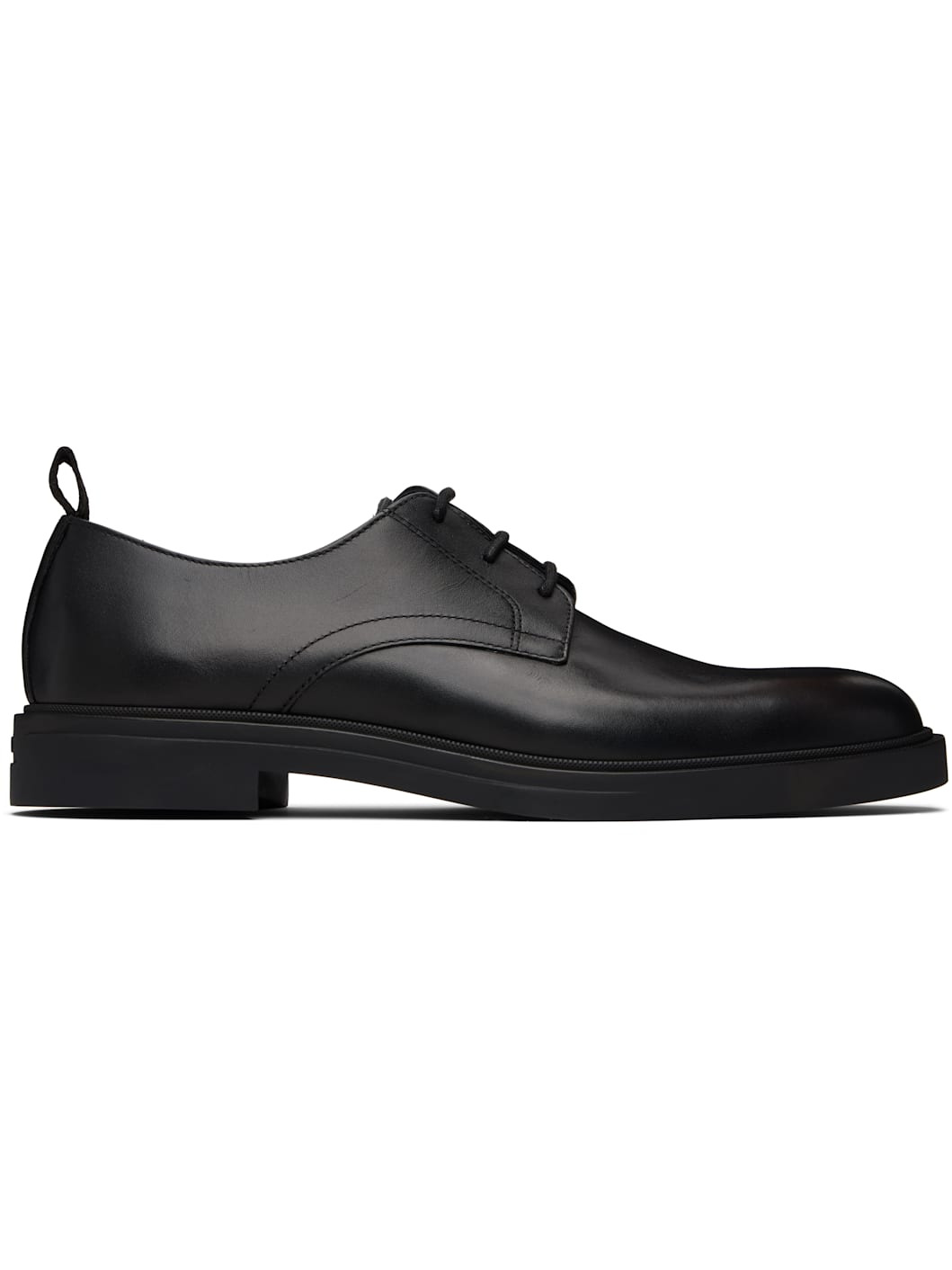 Buffed leather derbys. · Lace-up closure · Pull-loop at heel collar · Logo embossed at heel · Suede and grained leather lining · Treaded rubber sole Supplier color: Black Upper: leather. Sole: rubber. Made in Portugal 252085M225007