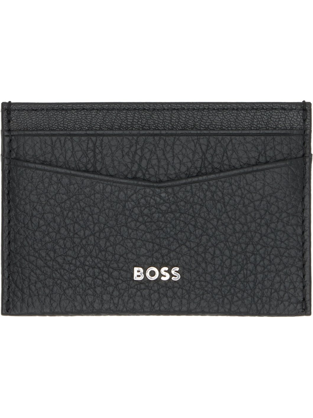 Grained leather card holder. · Logo hardware at face · Four card slots · Central note slot · H2.75" x W4" Supplier color: Black Leather. Made in India 252085M163006