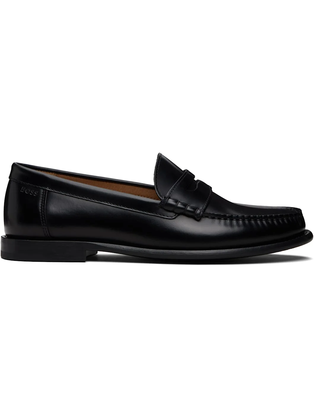 Polished leather loafers. · Moc toe · Strap with cutout at vamp · Logo embossed at outer side · Stacked heel with treaded rubber injection · Faux-leather sole with treaded rubber injection Supplier color: Black Upper: leather. Sole: synthetic, rubber. Made in Portugal 261085M231007