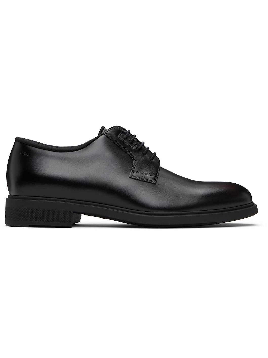 Polished leather derbys. · Lace-up closure · Piping at tongue and collar · Logo embossed at outer side · Twill lining · Treaded rubber sole Supplier color: Black Upper: leather. Sole: rubber. Made in Italy 252085M225004