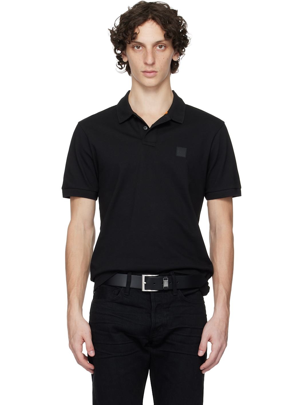 Black Slim-Fit Stretch-Cotton Logo Patch Polo