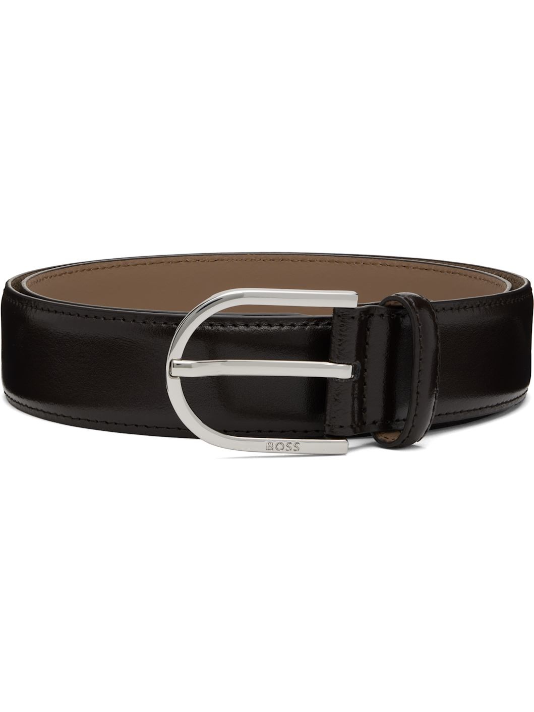 Polished leather belt. · Logo-engraved pin-buckle fastening · Silver-tone hardware · W1.25" Supplier color: Brown Leather. Made in Italy 252085M131002