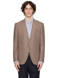Brown Regular-Fit Patterned Wool Blend Blazer