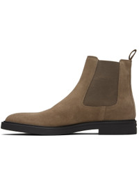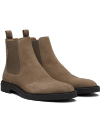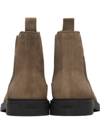 Ankle-high suede Chelsea boots. · Elasticized gusset at sides · Pull-loop at heel collar · Signature stripes embroidered at outer side · Buffed leather lining · Treaded rubber sole Supplier color: Medium beige Upper: leather, textile. Sole: rubber. Made in Portugal 252085M223009