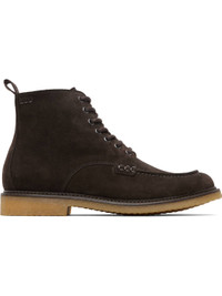 Ankle-high suede boots. · Moc toe · Lace-up closure · Logo stamp at outer side · Pull-loop at heel collar · Topstitching at welt · Treaded crepe rubber sole Supplier color: Dark brown Upper: leather. Sole: rubber. Made in Portugal 261085M255001
