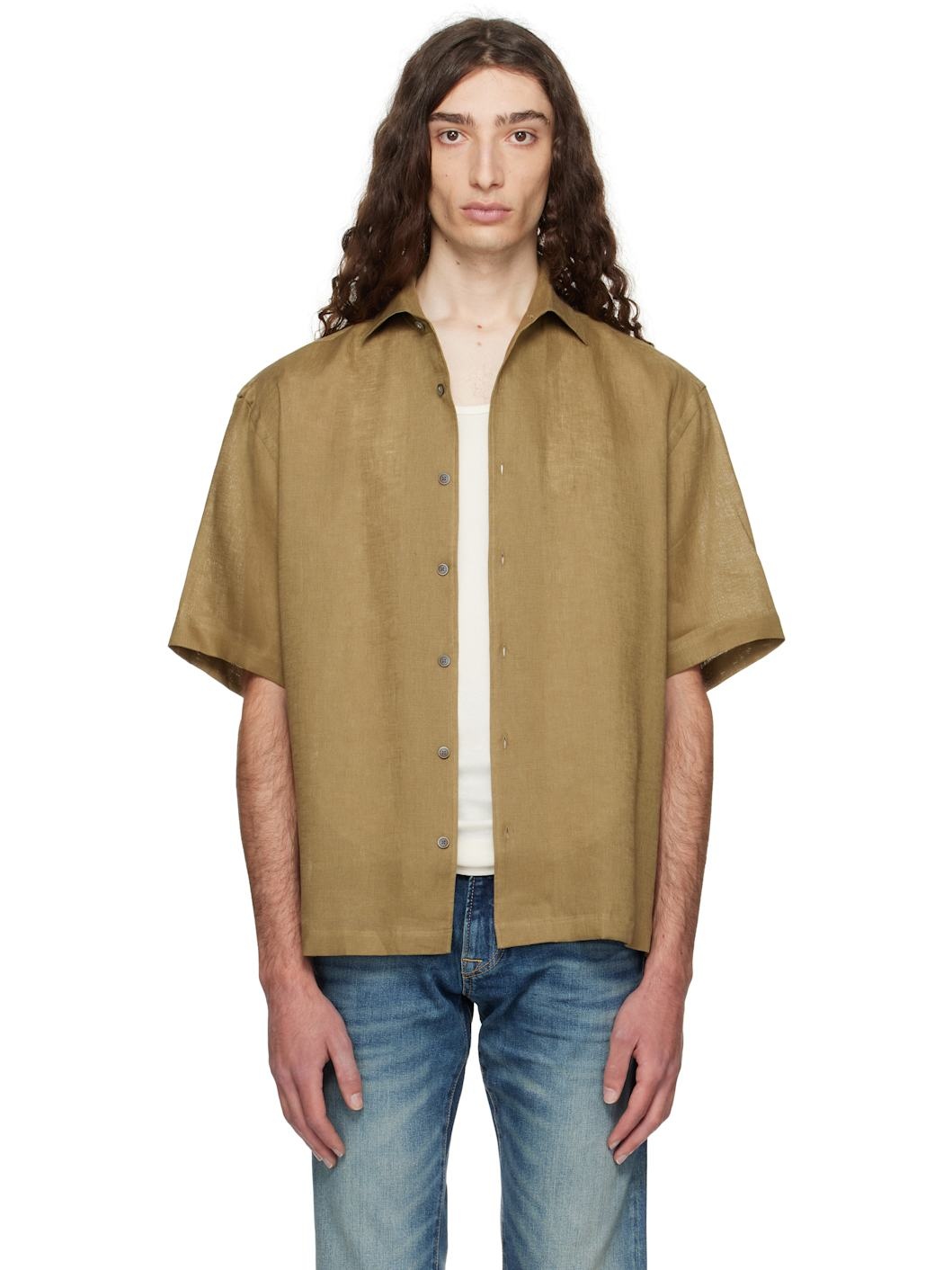 Khaki BECKHAM Edition Relaxed-Fit Linen Shirt