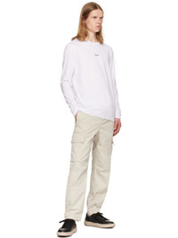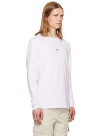 White Long-Sleeved Stretch Cotton Logo Print T-shirt