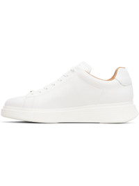 Low-top buffed leather sneakers. · Logo hardware at lace-up closure · Logo embossed at tongue and heel tab · Padded tongue and collar · Treaded rubber sole Supplier color: White Upper: leather. Sole: rubber. Made in Portugal 261085M237058