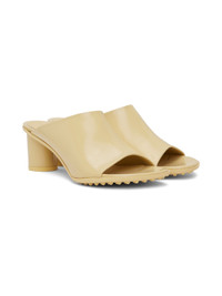 Polished lambskin slip-on heeled sandals in beige. · Open toe · Logo embossed at cushioned footbed · Covered block heel with rubber injection · Treaded rubber sole - Heel: H2.25 in Supplier color: Rubber Upper: lambskin. Sole: rubber. Made in Italy 232798F125001
