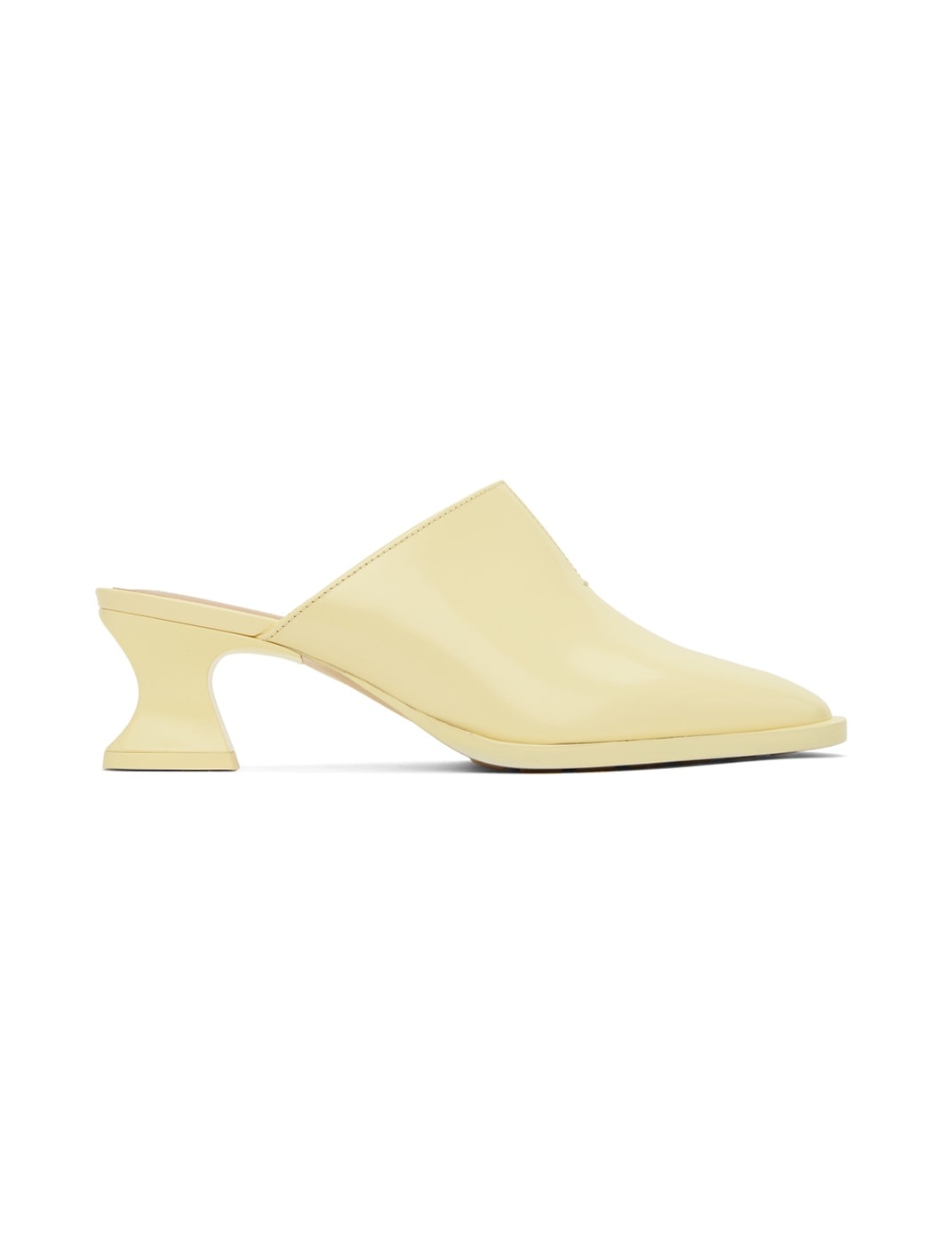 Polished calfskin mules in beige. · Cutout at vamp · Logo-embossed buffed lambskin footbed · Covered modified kitten heel with rubber injection · Leather sole with rubber injection · Heel: H2" Supplier color: Camomile Upper: calfskin. Sole: leather, rubber. Made in Italy 241798F122009
