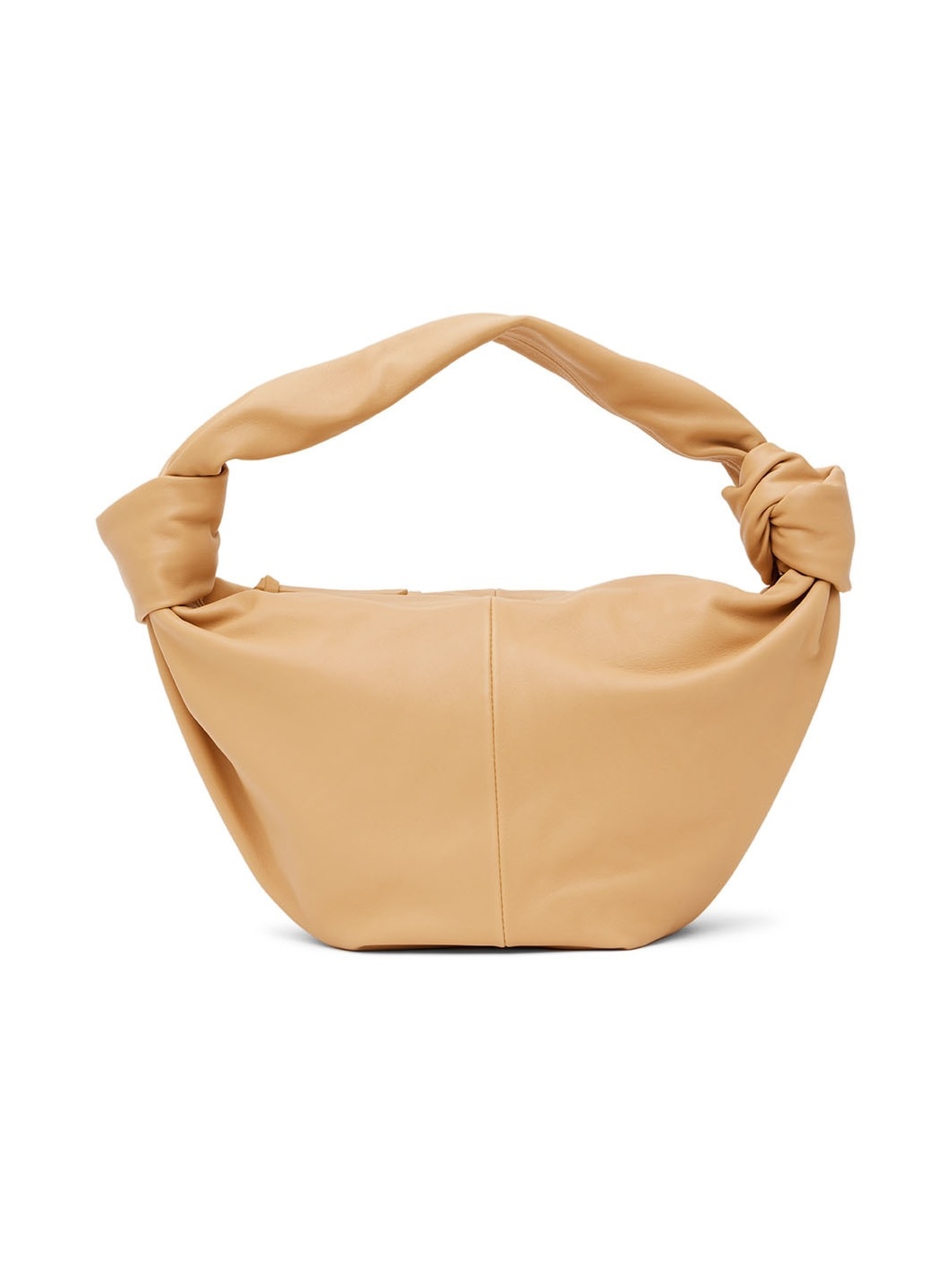 Buffed calfskin top handle bag in beige. · Carry handle with knotted accents · Zip closure · Buffed calfskin lining · H4.5 x W10 x D6 in Supplier color: Almond gold Calfskin. Made in Italy 221798F048032