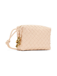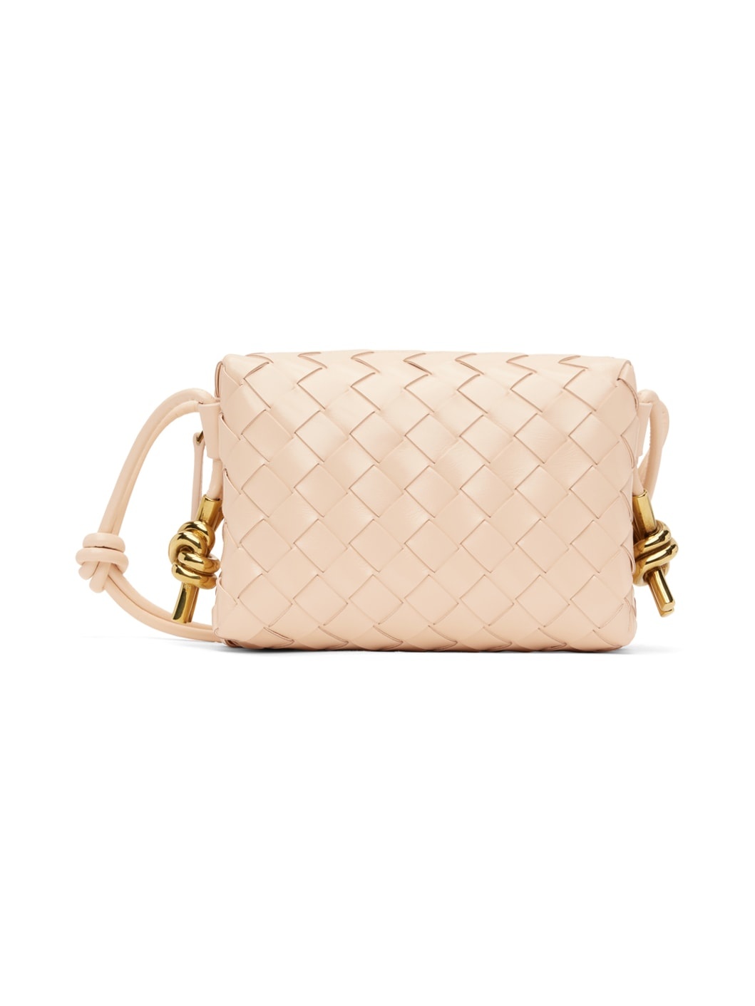 Intrecciato-woven polished lambskin shoulder bag in beige. · Knotted detailing and hardware at shoulder strap · Zip closure · Unlined · H5 x W6.5 x D2.5 in Supplier color: Macaroon muse Lambskin. Made in Italy 232798F048033