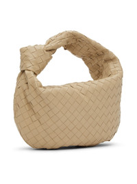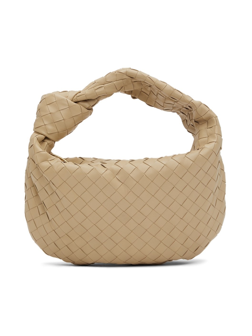 Intrecciato-woven grained lambskin shoulder bag in beige. · Integrated carry handle with knotted detailing · Zip closure · Calfskin lining · Gold-tone hardware · H12 x W15 x D4 in Supplier color: Porridge/Gold Leather. Made in Italy 221798F048030