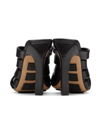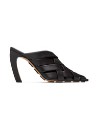 Intreccio-woven grained lambskin slip-on heeled sandals in black. · Pointed toe · Logo embossed at padded footbed · Covered stiletto heel · Leather sole with rubber injections · Heel: H4 in Supplier color: Black Upper: lambskin. Sole: leather, rubber. Made in Italy 231798F125042