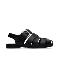 Woven buffed calfskin sandals in black. · Pin-buckle ankle strap · Buffed goatskin lining · Logo embossed at padded footbed · Treaded rubber sole Supplier color: Black Upper: calfskin. Sole: rubber. Made in Italy 242798M234006