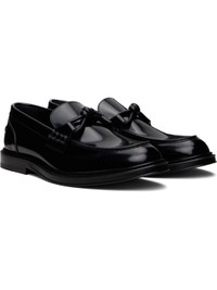 Brushed calfskin loafers in black. · Moc toe · Knotted accent at vamp · Pinched seam at heel counter · Suede and buffed calfskin lining · Stacked leather heel with rubber injection · Leather sole Supplier color: Black Upper: calfskin. Sole: leather, rubber. Made in Italy 251798M231002