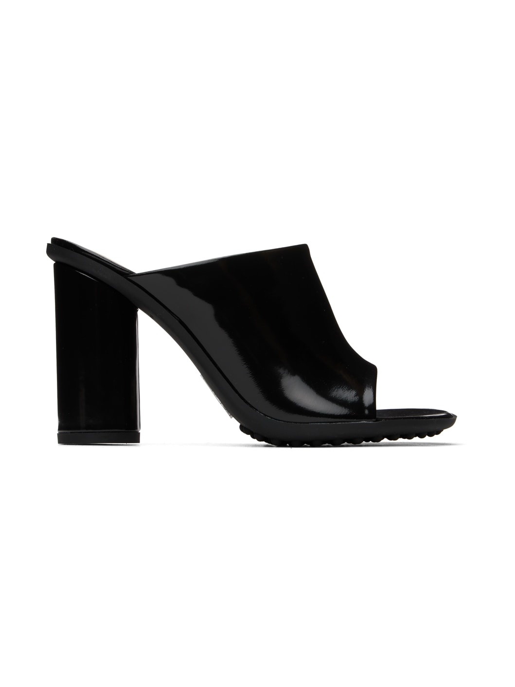Polished lambskin slip-on heeled sandals in black. · Open round toe · Logo embossed at padded leather footbed · Covered cylindrical block heel · Leather sole with rubber injections · Heel: H3.25 in Supplier color: Black Upper: lambskin. Sole: leather. Made in Italy 231798F122015