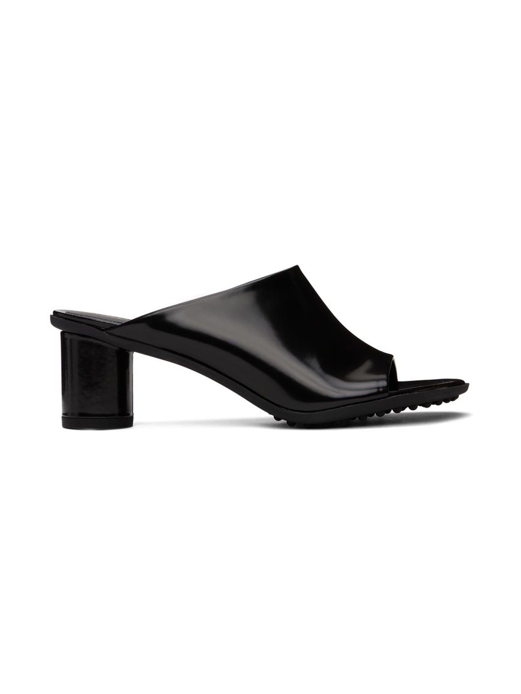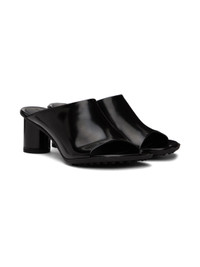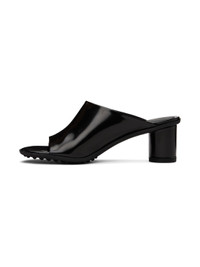 Polished lambskin slip-on heeled sandals in black. · Open toe · Logo embossed at cushioned footbed · Covered block heel with rubber injection · Treaded rubber sole - Heel: H2.25 in Supplier color: Black Upper: lambskin. Sole: rubber. Made in Italy 232798F125002