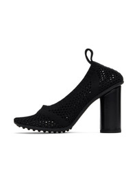Mesh heels in black. · Elasticized rib knit collar · Logo-bonded pull loop at heel · Logo embossed at padded leather footbed · Cylindrical block heel with rubber injection · Pebbled rubber sole · Heel: H3.5" Supplier color: Black Upper: textile. Sole: rubber. Made in Italy 241798F122006