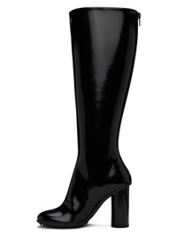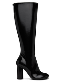 Knee-high patent lambskin boots in black. · Zip closure at heel · Lambskin lining · Covered cylindrical block heel · Treaded rubber outsole · Heel: H3.5 in Supplier color: Black Upper: lambskin. Sole: rubber. Made in Italy 232798F115002