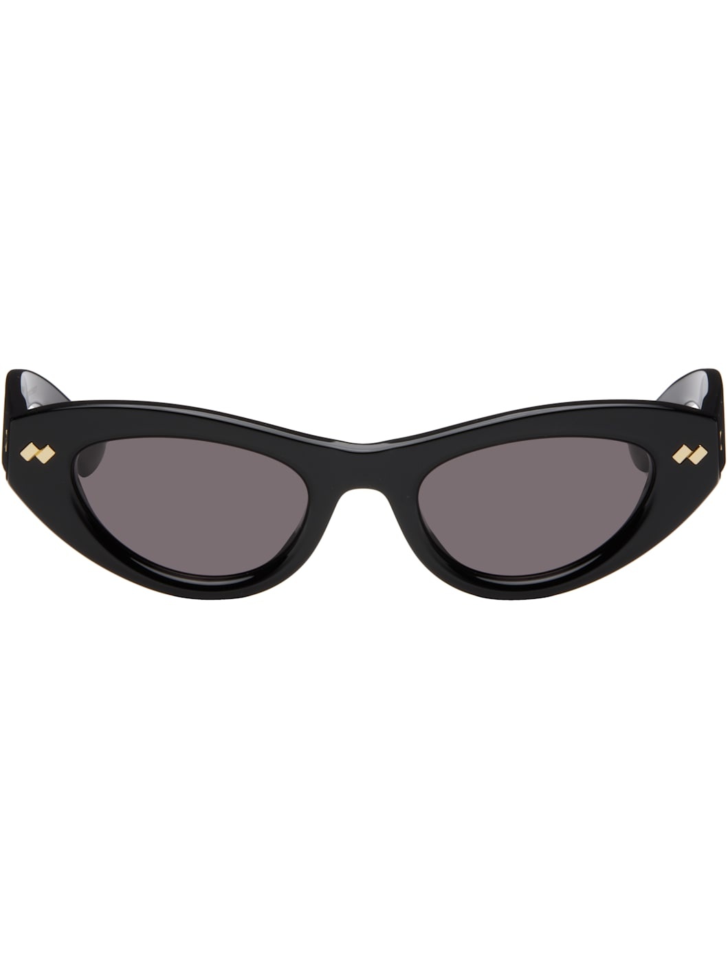 Cat-eye acetate-frame sunglasses in black. · Gray lenses · 100% UVA/UVB protection, category 3 · Integrated nose pads · Inset logo hardware at face and temples · Logo etched at temples · Includes case · Size: 50.21 140 Supplier color: Black Acetate. Made in Italy 252798F005015