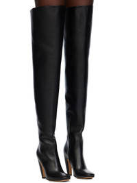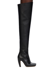 Over-the-knee buffed calfskin boots in black. · Round toe · Zip closure at inner side · Buffed lambskin lining · Covered heel · Leather outsole with rubber injection · Heel: 4 in Supplier color: Black Calfskin, lambskin, synthetic. Made in Italy 222798F115002