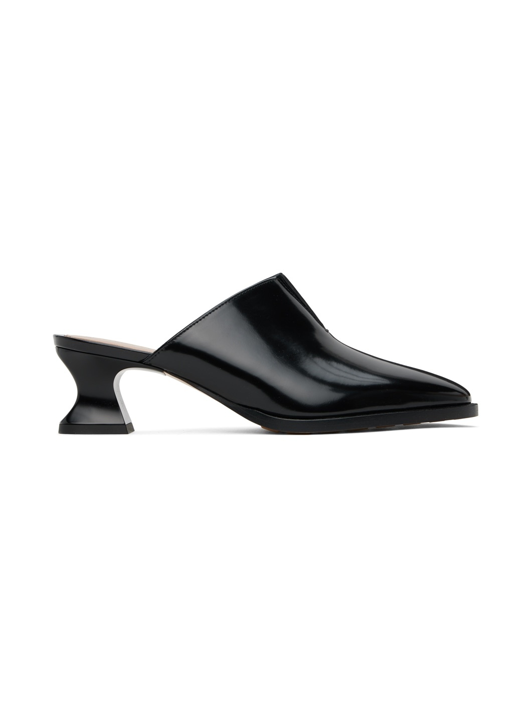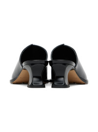 Polished calfskin mules in black. · Cutout at vamp · Logo-embossed buffed lambskin footbed · Covered modified kitten heel with rubber injection · Leather sole with rubber injection · Heel: H2" Supplier color: Black Upper: calfskin. Sole: leather, rubber. Made in Italy 241798F122010