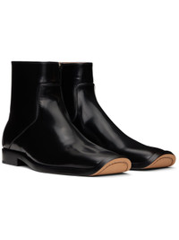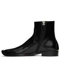 Ankle-high calfskin boots in black. · Modified square toe · Zip closure at side · Calfskin lining · Stacked leather heel · Leather sole Supplier color: Black Calfskin. Made in Italy 242798M228003