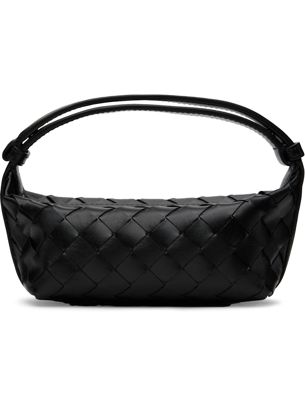 Intrecciato-woven grained calfskin top handle bag in black. · Adjustable carry handle · Zip closure · Card slot at interior · Canvas lining · Gold-tone hardware · H3.5" x W9" x D4" Supplier color: Black/Gold Calfskin. Made in Italy 251798F046031