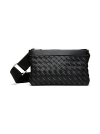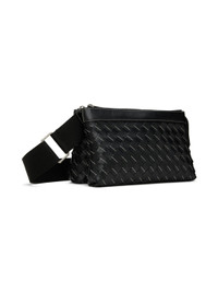 Intrecciato-woven grained lambskin and calfskin messenger bag in black. Two-compartment interior converts to pouch. · Adjustable and detachable webbing shoulder strap · Zip closure · Patch and zip pockets at interior · Silver-tone hardware · Canvas lining · Contrast stitching in white · H6.5" x W10" x D2.5" Supplier color: Black Lambskin. Made in Italy 232798M171001