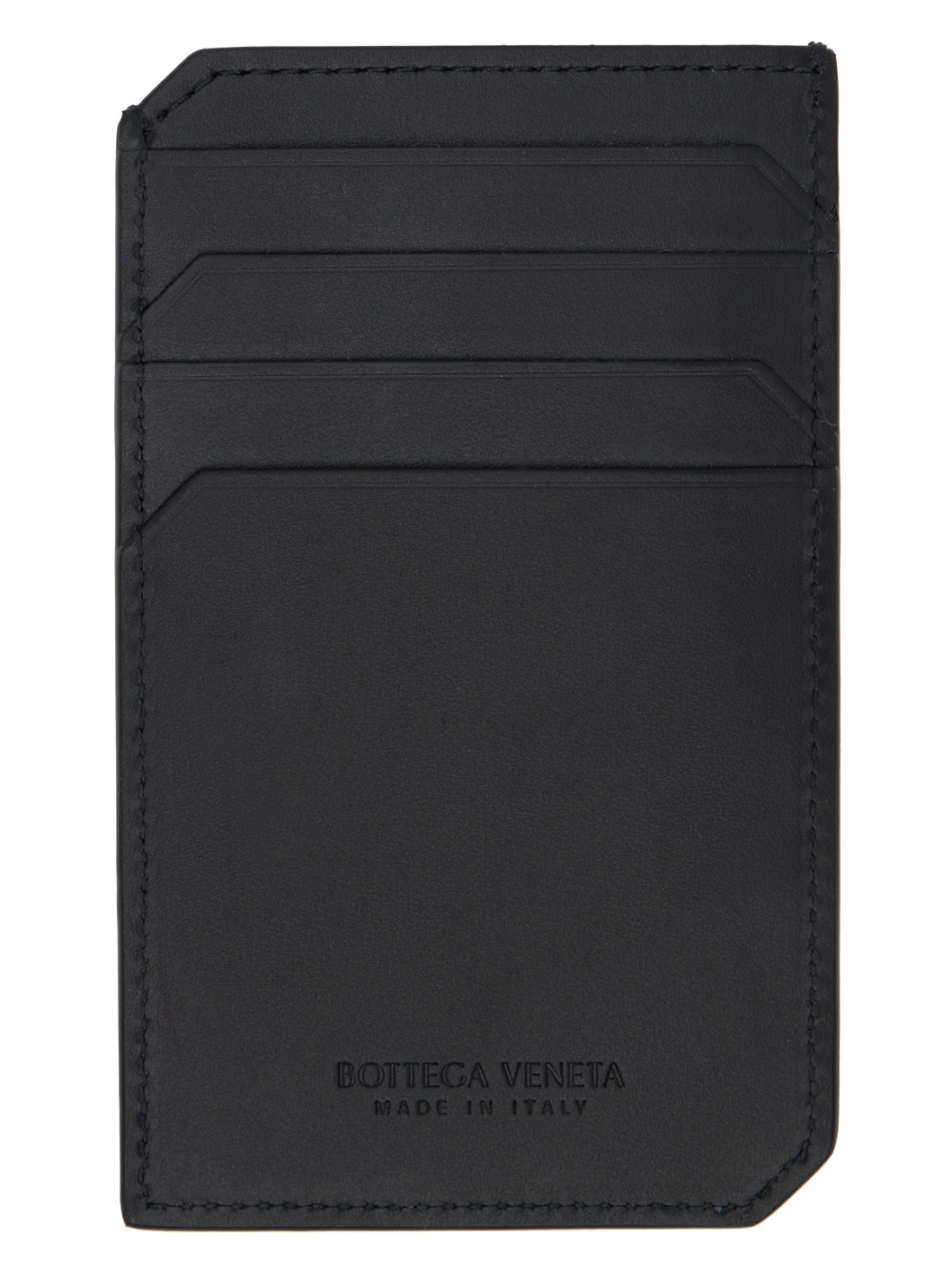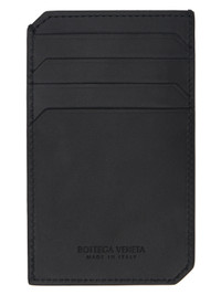 Intrecciato-woven buffed calfskin card holder in black. · Logo stamp at back face · Four card slots · One note slot · H4.75" x W3" Supplier color: Black Calfskin. Made in Italy 242798M163002