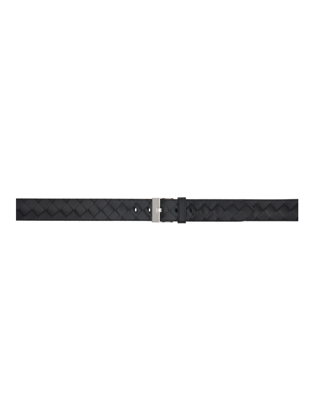 Intrecciato-woven BioBasedLeather® buffed calfskin belt in black. · Pin-buckle fastening · Silver-tone hardware · W1.5" Supplier color: Black/Silver Calfskin. Made in Italy 242798M131000