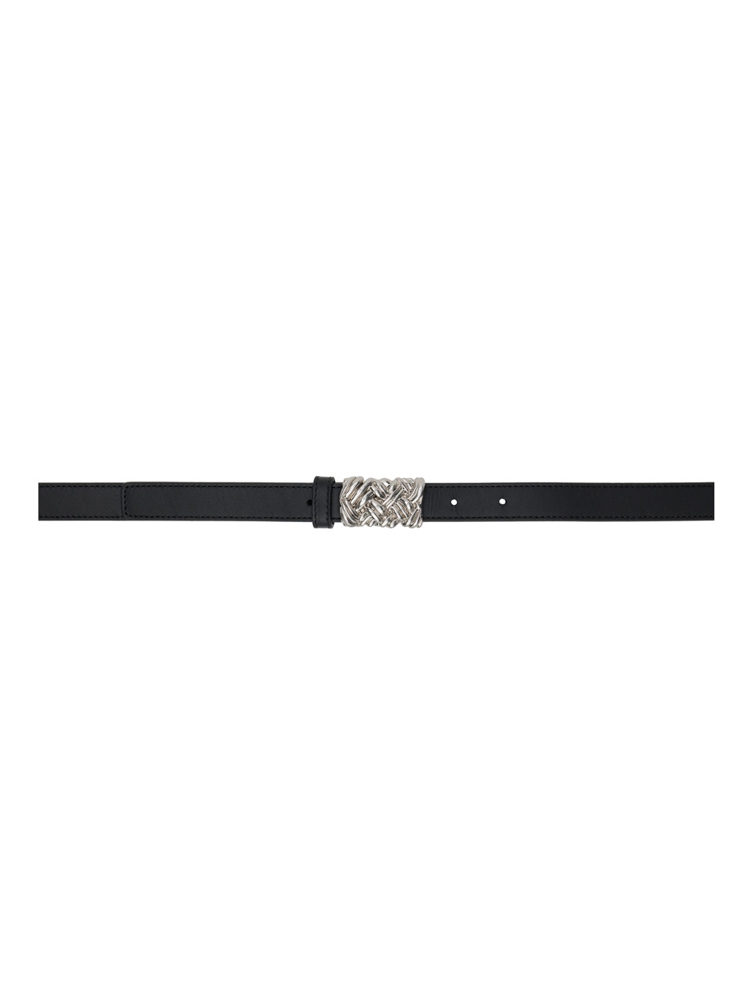 Buffed calfskin belt in black. · Graphic hardware at pin-buckle fastening · Keeper-loop · W0.75" Supplier color: Black/Silver Calfskin. Made in Italy 242798F001006