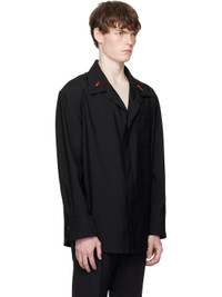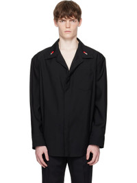 Wool barathea shirt. · Open spread collar · Removable enameled hardware at collar · Concealed button closure · Patch pocket at chest · Twin creases at front · Shirttail hem · Panel at shoulders · Buttoned barrel cuffs Supplier color: Black 100% wool. Made in Italy 251798M192016