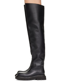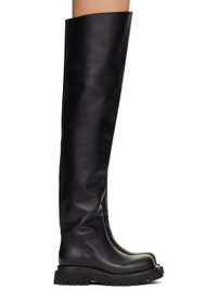 Thigh-high buffed calfskin boots in black. · Zip closure at inner side · Grained leather lining · Rubber platform midsole · Treaded rubber outsole · Platform: H1.5 in Supplier color: Black Upper: calfskin. Sole: rubber. Made in Italy 222798F115003
