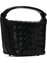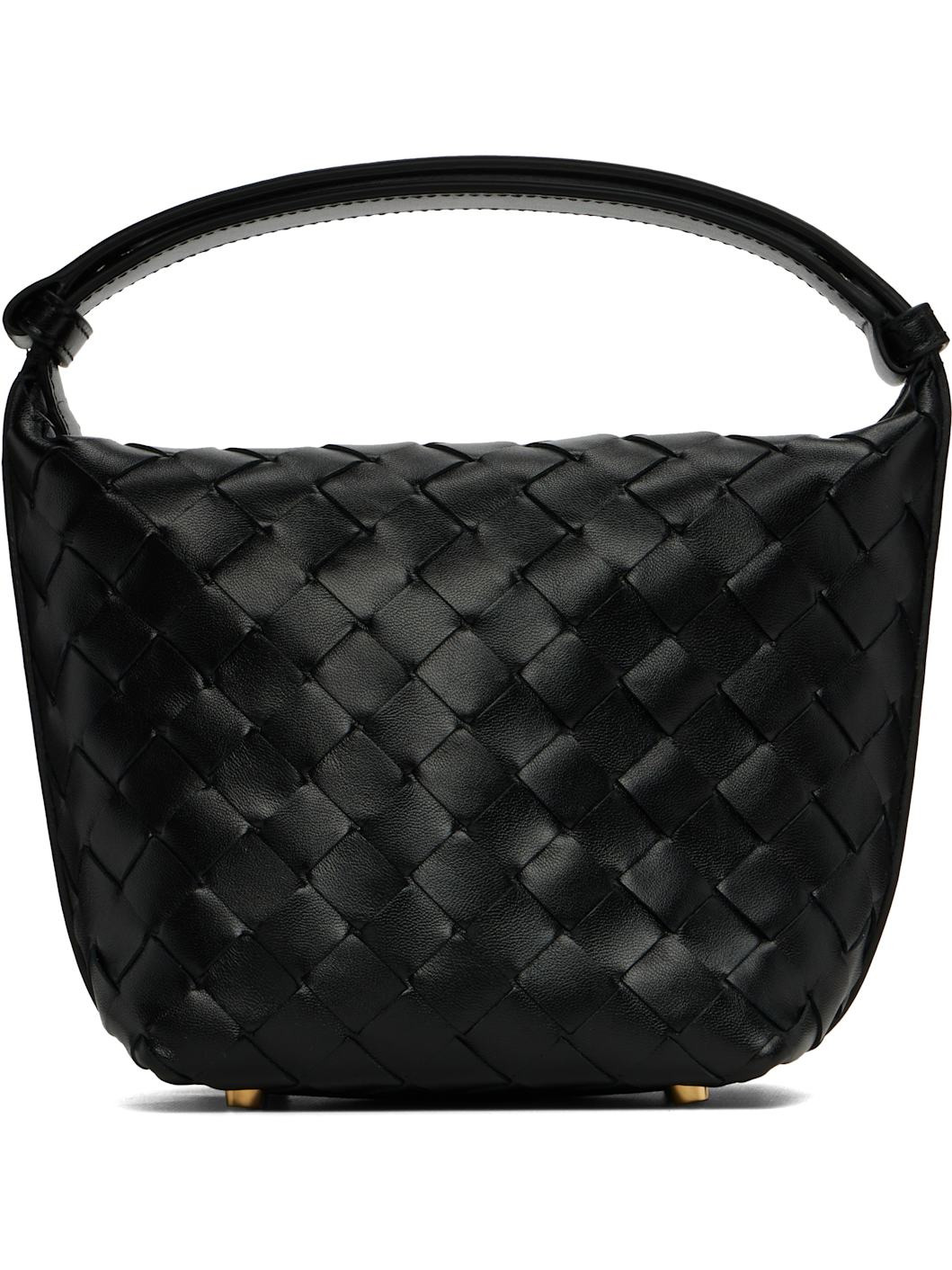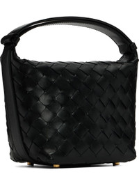 Intrecciato-woven grained calfskin shoulder bag. · Adjustable post-stud shoulder strap · Bumper studs at base · Zip closure · H6.75" x W8" x D4.5" Supplier color: Black/Gold Calfskin. Made in Italy 252798F048012