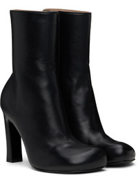 Ankle-high buffed lambskin boots in black. · Square toe · Zip closure at inner side · Covered heel with rubber injection · Leather sole · Heel: H3.75" Supplier color: Black Upper: lambskin. Sole: leather, rubber. Made in Italy 251798F113002