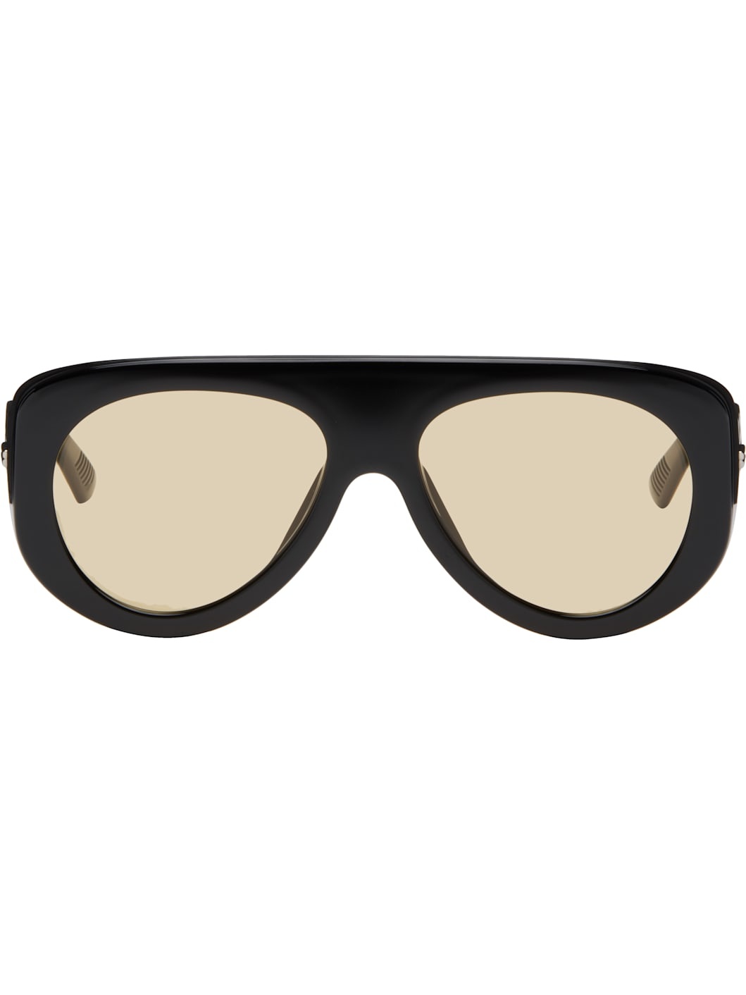Shield-style acetate-frame sunglasses in black. · Orange lenses · 100% UVA/UVB protection, category 1 · Integrated nose pads · Metal trim at face · Inset logo hardware at temples · Includes case · Size: 58.17 130 Supplier color: Black/Black/Orange Acetate, metal. Made in Italy 252798M134014