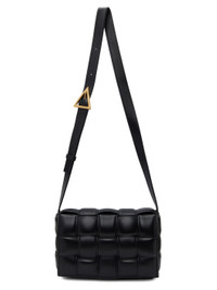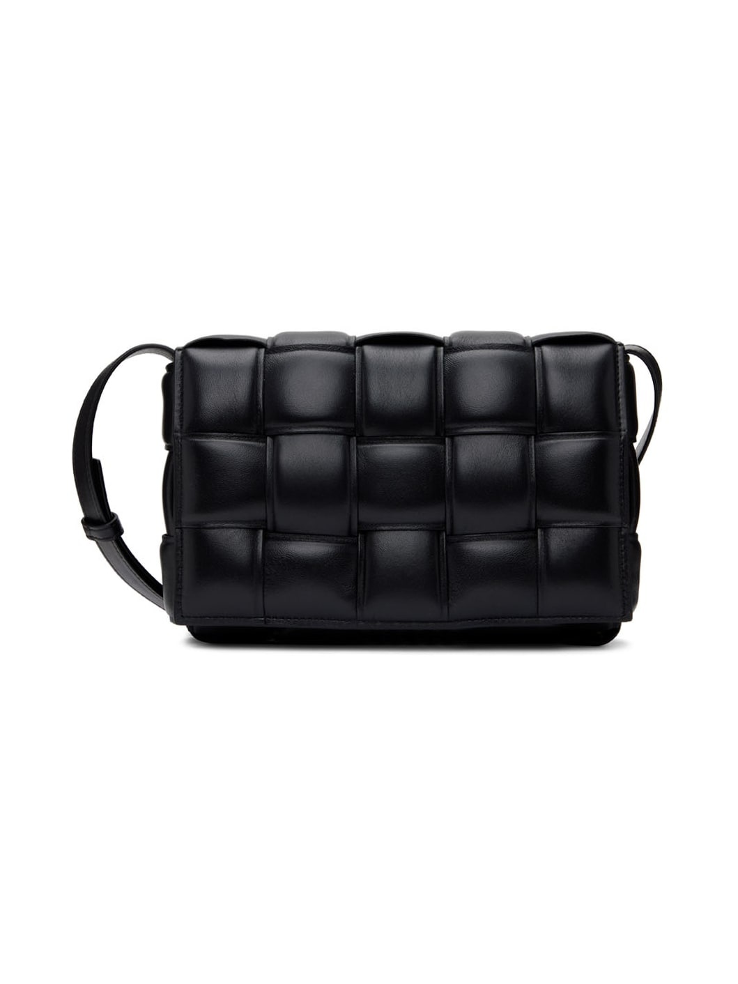 Padded intrecciato-woven grained lambskin shoulder bag in black. · Adjustable shoulder strap with pin-buckle fastenings · Foldover flap with magnetic closure · Zip pocket at interior · Gold-tone hardware · H6 x W9 x D2.25 in Supplier color: Black Lambskin. Made in Italy 221798F048005