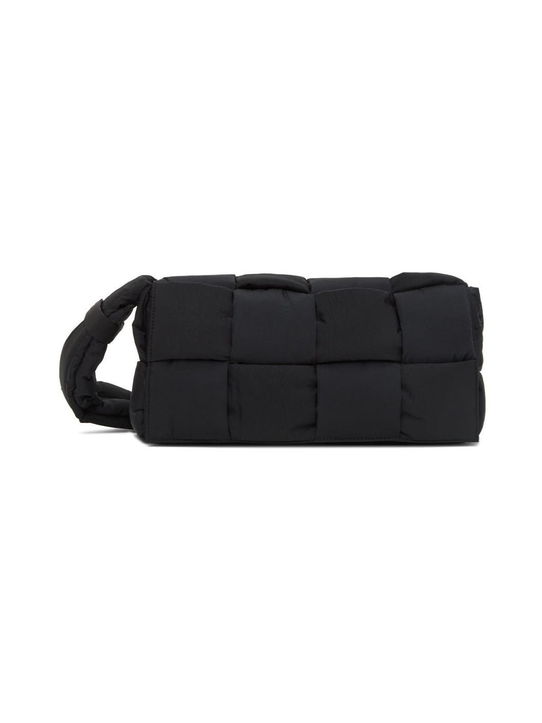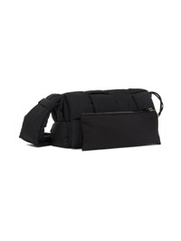 Padded intreccio-woven nylon taffeta messenger bag in black. · Adjustable shoulder strap · Foldover flap with magnetic fastening · Detachable zip pouch at interior · H6.5 x W11.5 x D3.5 in Supplier color: Black Textile. Made in Italy 221798M170067